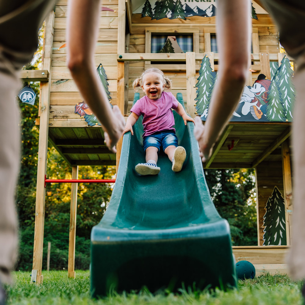 Sicherheit und Stabilität stehen zu Beginn der Spielplatzreise eines Kindes an erster Stelle. Niedrige Spielstrukturen mit rutschfesten Oberflächen ermöglichen es Kindern, selbstbewusst zu rennen, zu klettern und zu springen, ohne sie zu überfordern. Eine maximale Höhe von etwa 90 cm bis 120 cm hilft dabei, unnötige Risiken zu vermeiden. Gleichzeitig regen Spielelemente wie Spielhäuser oder Matschküchen das Lernen an und fördern die Fantasie.