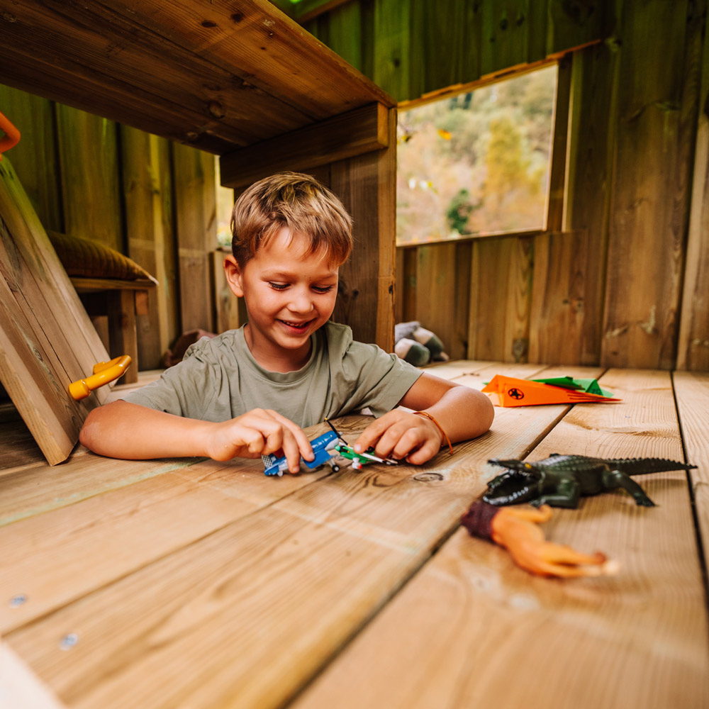 Bei der Auswahl eines Spielturms für 3–4‑jährige Kinder ist es wichtig, auf einfache, altersgerechte Spielelemente zu achten. Kleinere Spieltürme mit niedrigen Podesthöhen, wie unsere My First Serie, eignen sich besonders gut für dreijährige Kinder, da sie speziell auf die motorischen Fähigkeiten von Kleinkindern abgestimmt sind. Mit zunehmendem Alter wird auch unsere Tiny Serie mit etwas höheren Podesten interessant.