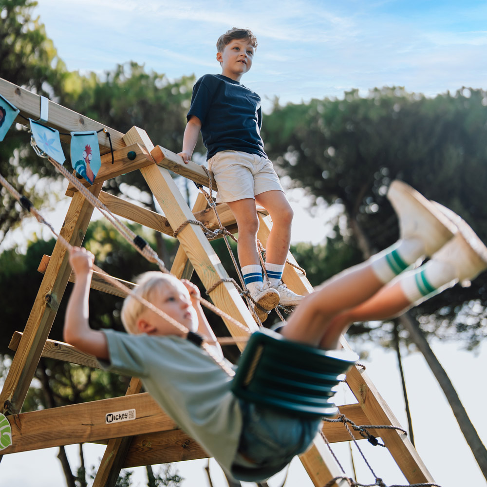 Während die meisten unserer Spieltürme eher für ältere Kinder geeignet sind, bietet Wickey auch Babyschaukeln an. Diese sind ideal, um die oben beschriebenen Fähigkeiten gezielt zu fördern.