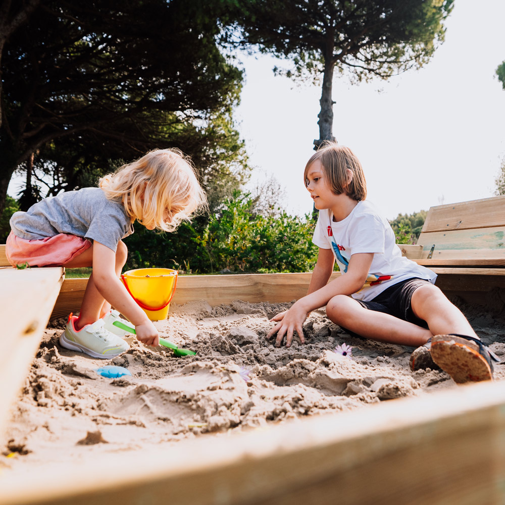 Sandkästen, Matschküchen und Spielhäuser bieten zudem unzählige Möglichkeiten zum Entdecken und für fantasievolles Spielen. Diese Spielelemente sind gezielt darauf ausgelegt, die Entwicklung junger Kinder zu unterstützen und sie sicher an Rollenspiele sowie sensorische Erfahrungen heranzuführen.
